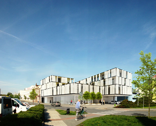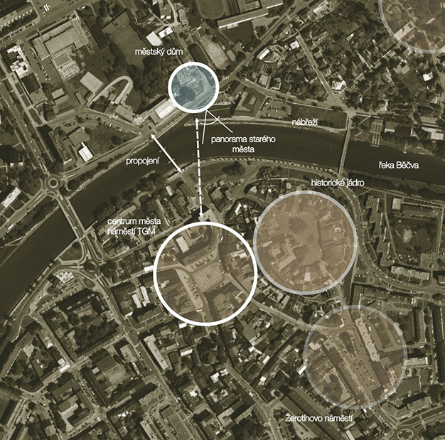 Navrhovaný objekt nemá za cíl vytvářet v lokalitě novou dominantu, avšak má pouze svou hmotou doplnit a vyvážit celkovou kompozici území.