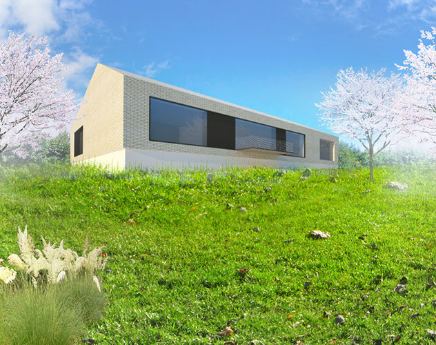 Dům umístěný na okraji louky s nádherným výhledem na městečko Rosice u Brna kombinuje luxusní městské bydlení s dravou přírodou. Louku ponecháváme bez zásahu a vtahujeme ji do nitra domu prostřednictvím velkého atria. To nám dává možnost definovat intimní část pozemku jako pobytovou zahradu. Propojení interieru a exterieru má navodit harmonický pocit soužití s přírodou.