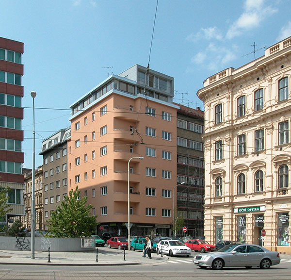 Původní dům od slovenských architektů Weiwurm Vescei je z r 1937, má ryze funkcionalistický charakter, snahou autorů nástavby bylo na tento koncept navázat.Hmotové řešení vychází z urbanistické situace nároží.. Nástavba sestává ze dvou základních hranolů, z nichž nižší je v podstatě zdvojením stávající římsy, zatímco horní plechový je potom pokračováním zástavby protější strany Antonínské, záměrně ustupující do druhého plánu.
