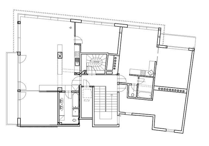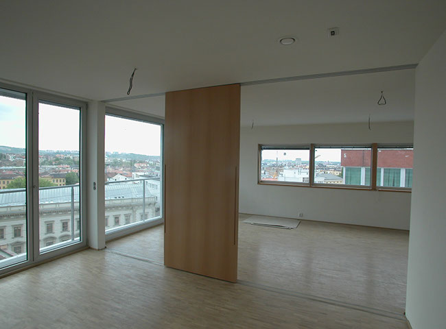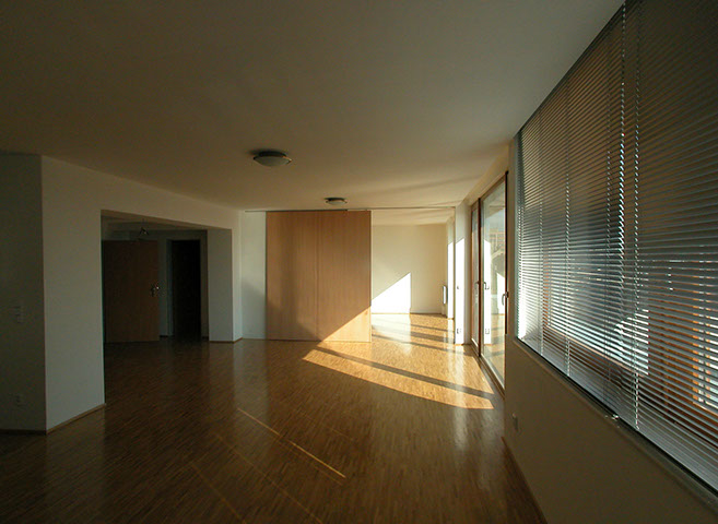 Půdní nástavba je navržena ve dvou podlažích. Dispoziční řešení umožnilo navrhnout tři byty,