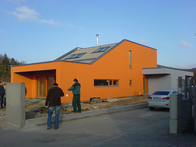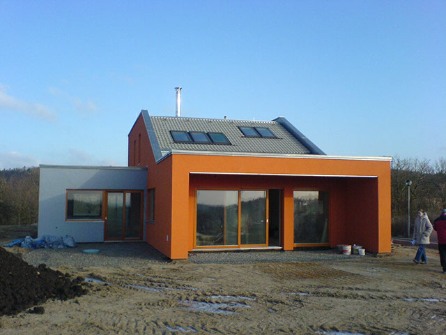 Objekt RD vychází z velmi jednoduché kompoziční skladby hmot, založené na objemech dvou hmot, které se do sebe zařezávají. Patrová část RD má výhled na Babí lom.