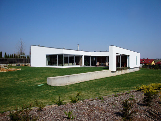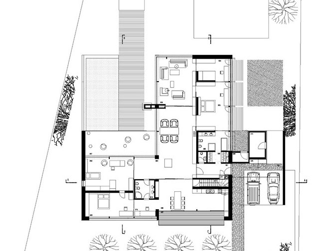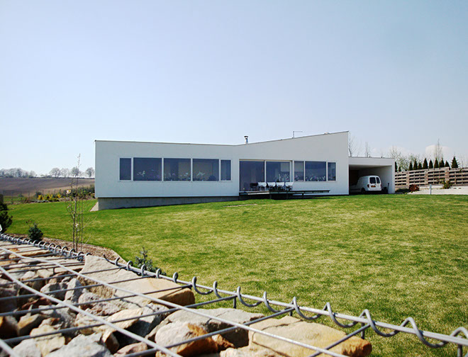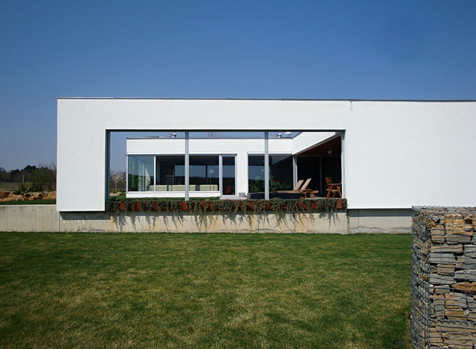 Dům je koncipován jako venkovská stavba, která je umístěna v otevřené krajině. Součástí je i obrovská zahrada dodávající místu na jedinečnosti. Vzhledem k poloze bylo použitím kamene a bílých omítek dosaženo jižanské atmosféry.