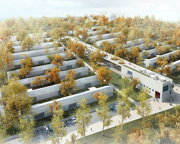 Předmětem překládané studie je vyřešení umístění všech provozů a atelierů FAVU VUT na východním svahu Kraví Hory v prostoru vymezeném souborem provizorních objektů VUT, celkem 13+2 a celkem 5 objektů města Brna.