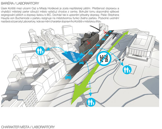 Brněnská okružní třída je nedořešeným urbanistickým problémem města. Vývoj města v tomto ohledu pokulhává za vývojem společnosti a potřebami moderní společnosti. Prudký rozvoj v 19. století znamenal stržení hradebního prstence a nahrazení okružní třídou, parky, kulturními a společenskými institucemi. Tím se z brněnského ringu, obdobně jako ve Vídni, stává jedno z nejhodnotnějších míst města. Přímá návaznost na historické jádro města a zároveň prostorové rezervy podnícené charakterem zástavby. Klasická městská bloková zástavba je doplněna solitéry institucí a galerií, stojícími na okružní třídě.